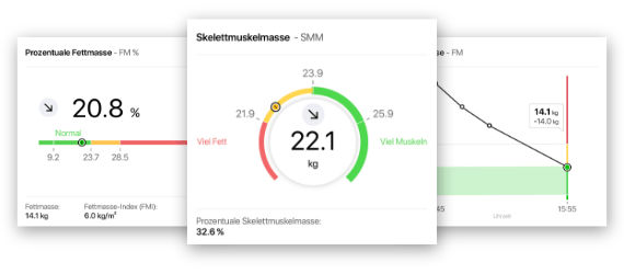 - In Verlaufsmessungen sehen Sie, ob eine Ernährungsumstellung oder ein Trainingsprogramm erfolgreich ist.